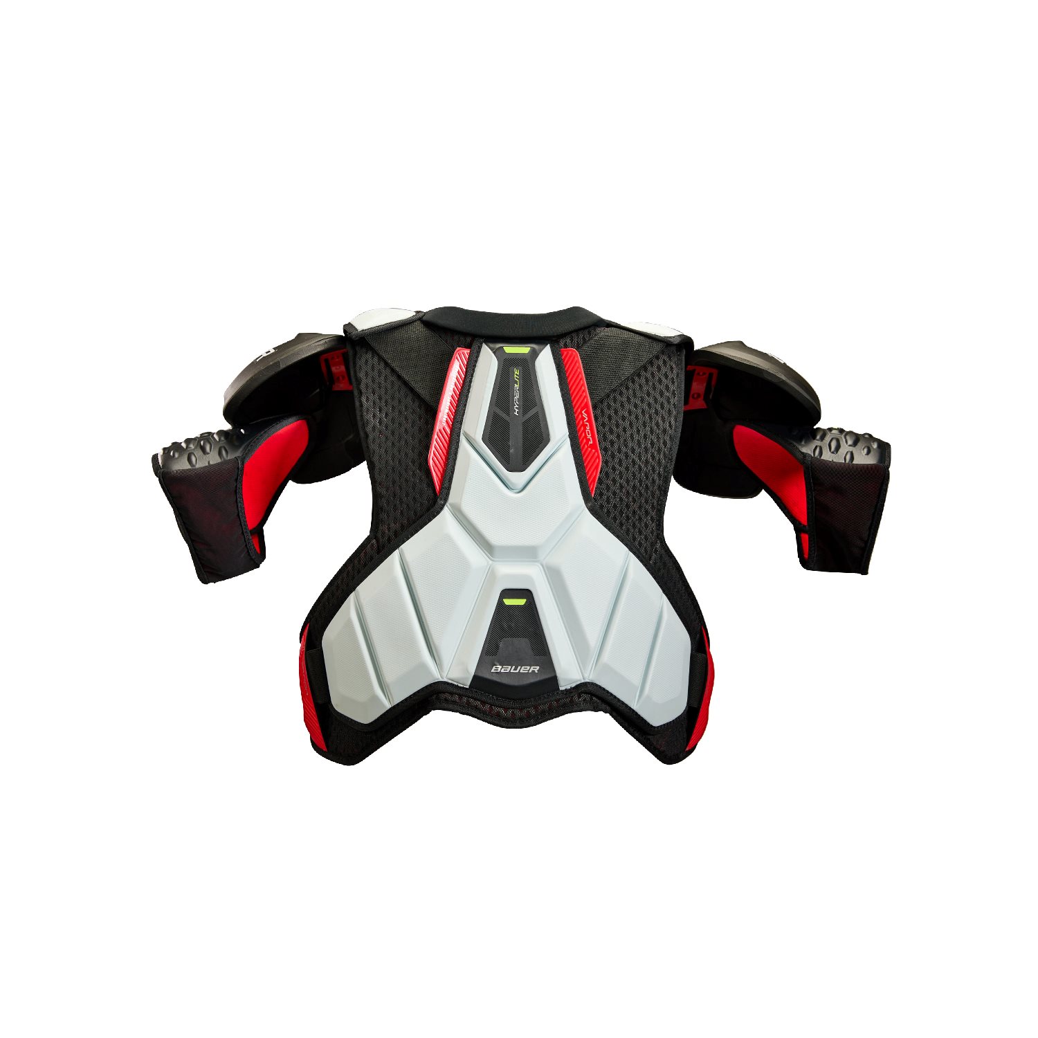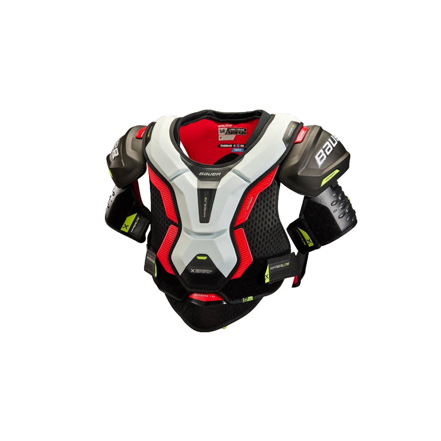 Nya Bauer Hyperlite axelskydd är tillverkat för att ge dig bästa kombinationen av låg vikt samt maximalt skydd. Detta i from av axelkåpor i Aerolite 2.0, ShockLite i bröstplattan och ryggen, absorberar skyddet smällar bättre samtidigt som det håller vikten nere. Vid sidan av bröstbenet och ryggraden får den Flexaprene för låg vikt och rörlighet som följer dig på isen. Överarmen får nya EXO-Lite av samma anledning. Hyperlite har även ett nytt innermaterial ThermoCore Zero för att leda bort svett och lukter, för att hålla dig sval och fräsch.
